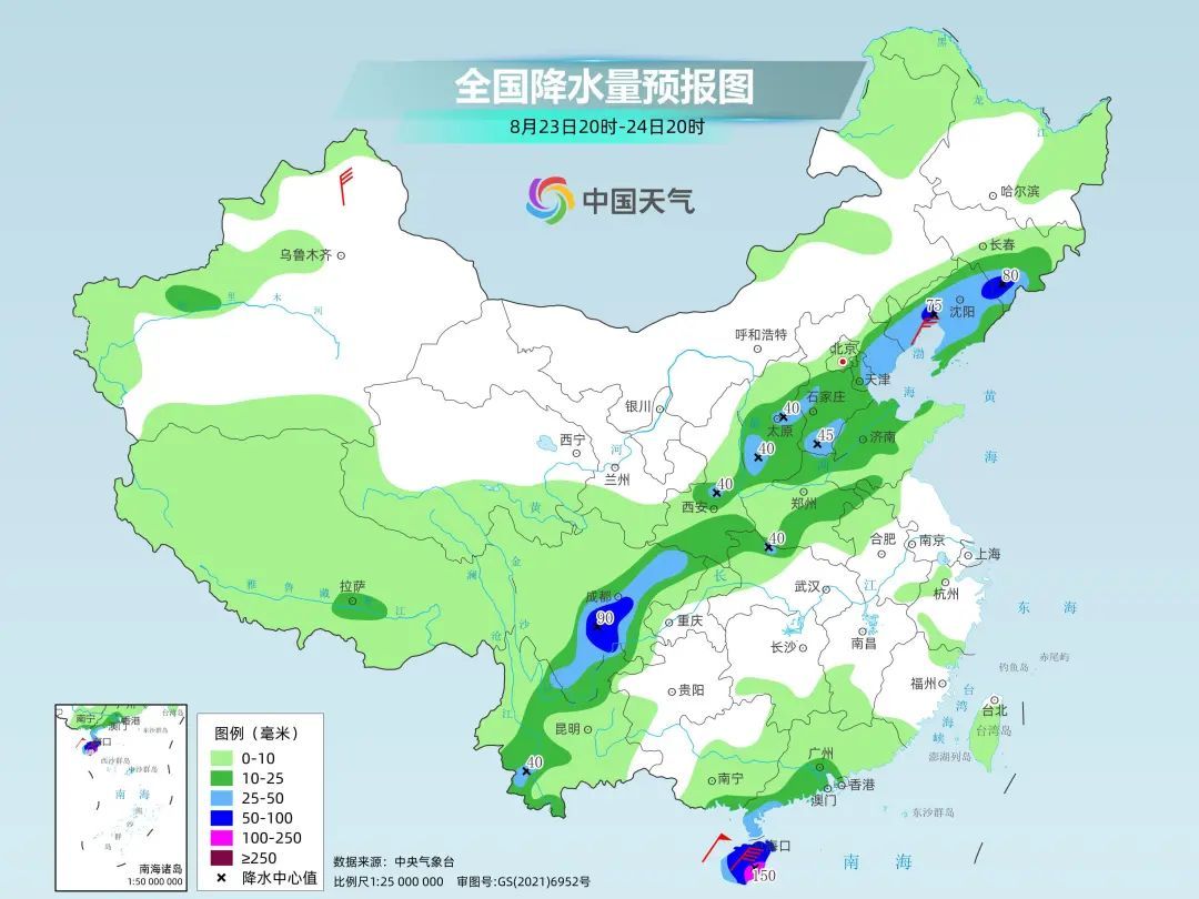 好消息是,这个热带系统还是能来降降温的——24日开始,广东南部、海南等地台风雨明显增多,对缓解暑热有一定作用,比如海口,最高气温将降到30℃以下。