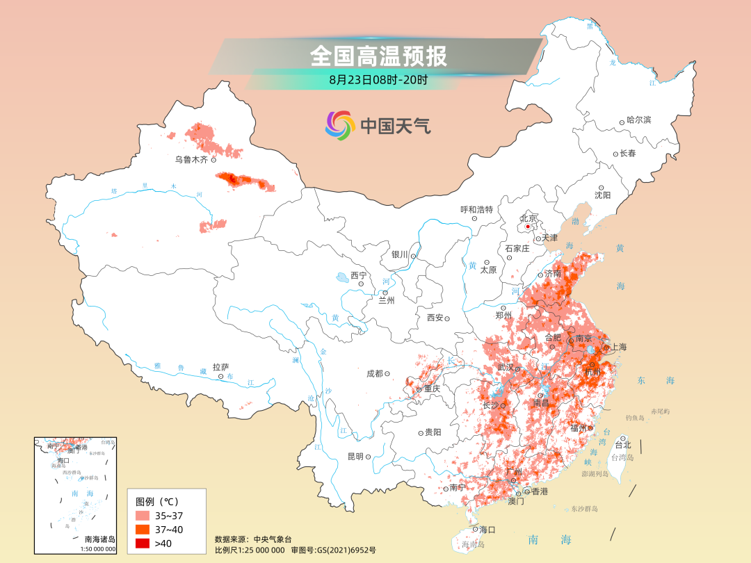 昨天,黄淮以南依然有大范围高温暑热天气,尤其是山东和周边区域出现了同期少见的高温天气,共52个气象监测站气温打破8月下旬最高纪录,其中山东安丘,连续2天(20日至21日)打破当地8月最高气温纪录。